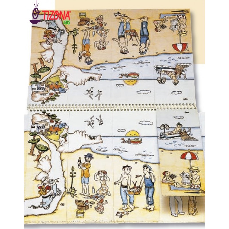 Cada libro móvil está compuesto por siete laminas y cada una de estas se divide en cuatro módulos intercambiable, lo que permite un total de 2.400 combinaciones de escenas sin perder la unidad global.